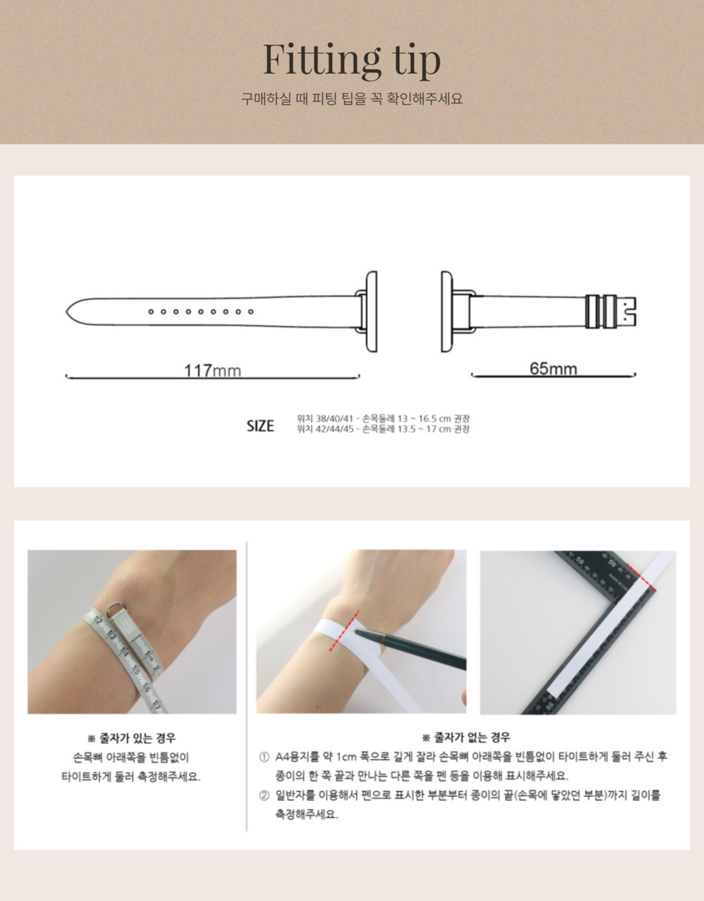손목사이즈(cm) / 워치페이스크기(38/40/41/42/44/45)